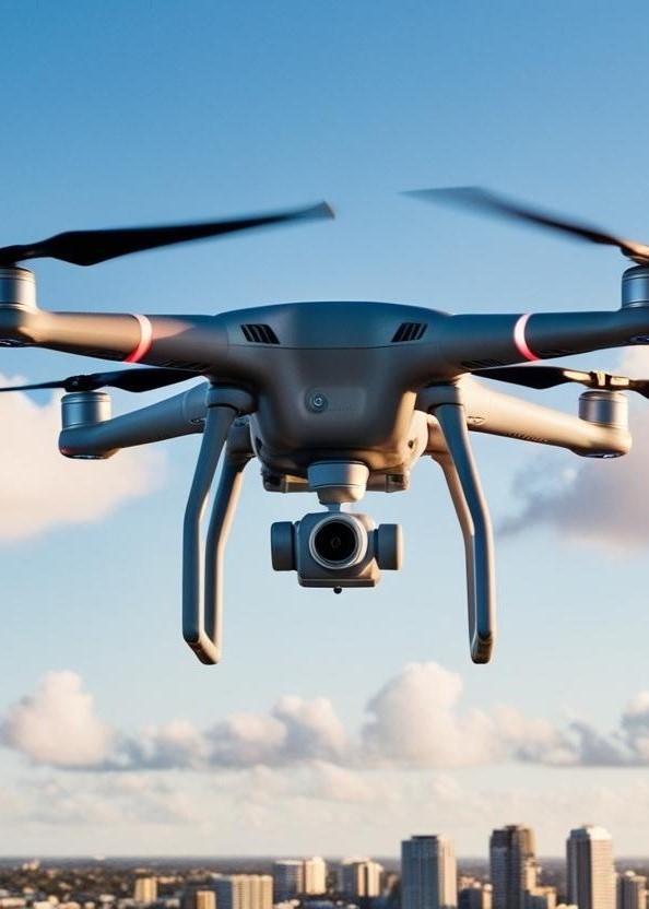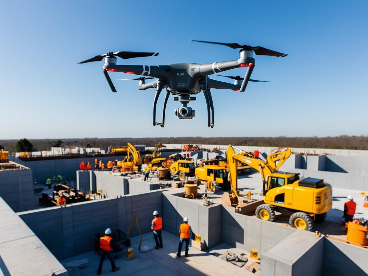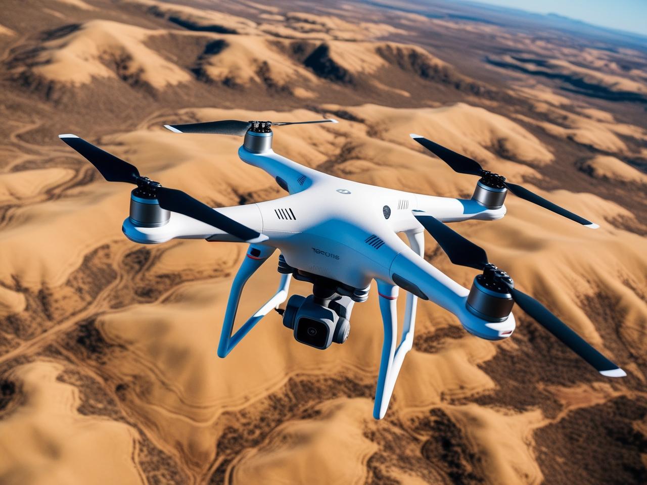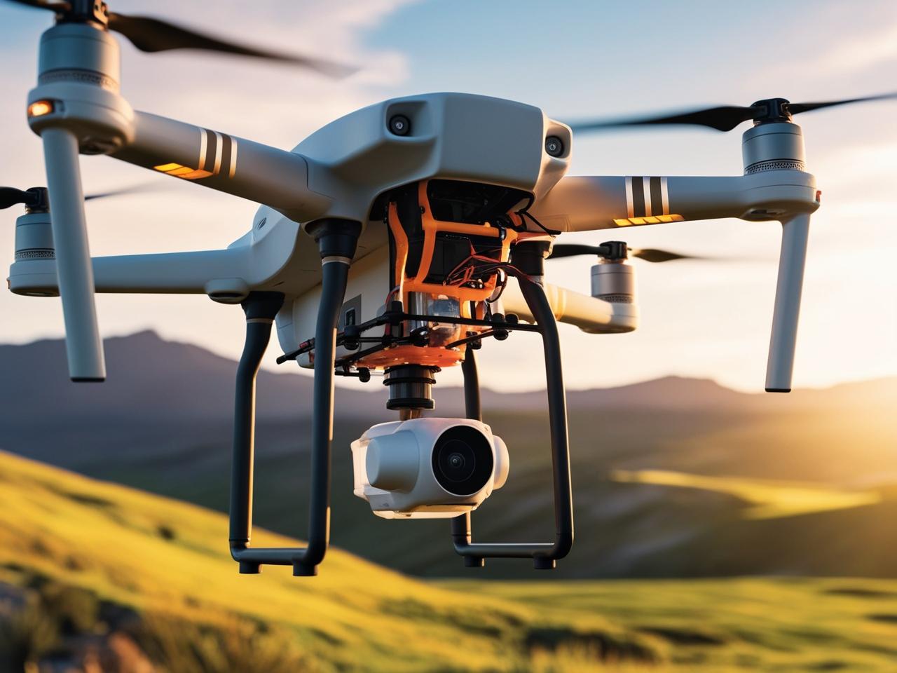 Mapeamento aéreo e topografia com drones, capturando imagens detalhadas com câmeras e sensores.